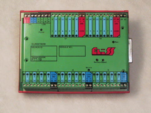 LONWORKS® KOMPATIBILNÝ ZÁKLADNÝ PLC MODUL Vlastnosti: - pinovo kompatibilný s twisted pair riadiacim modulom Echelon - komunikačný vysielač závisí od Echelon modulu (TP/XT-78, FTT-10,...) - expandovaná štandardná zbernica I/O Muxbus - 24 opticky oddelených digitálnych vstupov - 16 opticky oddelených transistorových výstupov - zbernicový konektor pre pripojenie expanzného modulu Popis HW: - 3 x 8 opticky oddelených digitálnych vstupov (I1 ÷ I3) - 2 x 8 opticky oddelených transistorových výstupov (Q1, Q2) - zbernicový konektor CANNON 25 pinov Popis: Modul ELW2416DB.1 predstavuje efektívny HW nástroj pri budovaní LONWORKS aplikácií, kdekoľvek sa požaduje väčší počet digitálnych vstupov/výstupov a I/O priestor sa dá podľa potreby ešte rozšíriť pomocou expanzného PLC modulu ELW2424DE.1. Vďaka takejto integrácii môže zákazník dosiahnuť optimalizáciu aplikácie tak po technickej ako aj ekonomickej stránke. Technické údaje